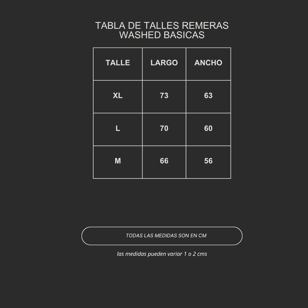 Cada prenda está confeccionada con un tratamiento washed artesanal, los tonos pueden diferir levemente de las imágenes de la publicación.